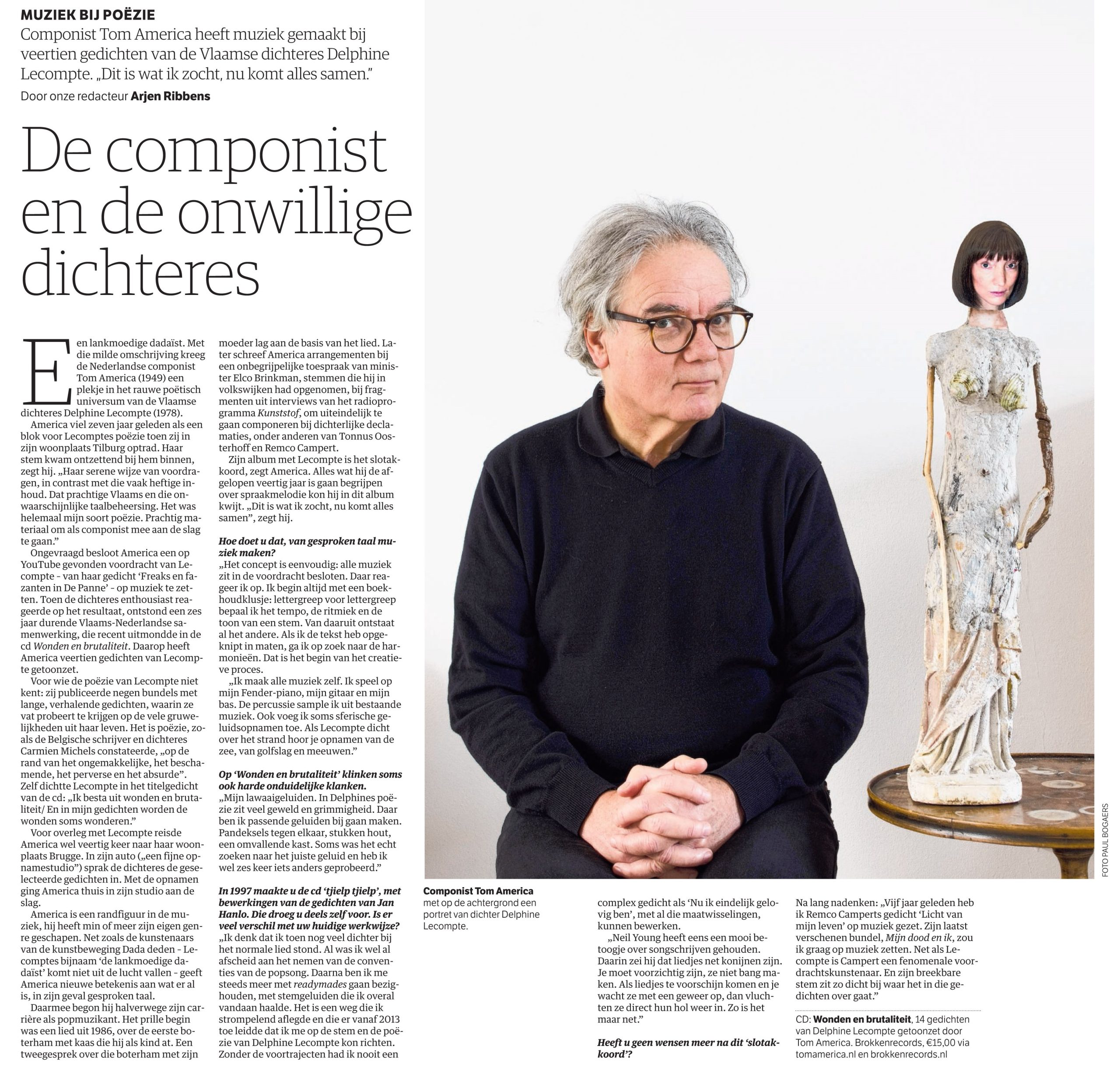 En inmiddels is er de cd Wonden en brutaliteit, uitgekomen op het label Brokken Records van Corrie van Binsbergen. Voor deze cd zette Tom America veertien gedichten van de Vlaamse dichteres Delphine Lecompte op muziek. Het was een project waar America maar liefst zes jaar intensief aan werkte. Naar eigen zeggen is hij daarbij steeds uitgegaan van de stem en voordracht van Lecompte zelf. Die was leidend.